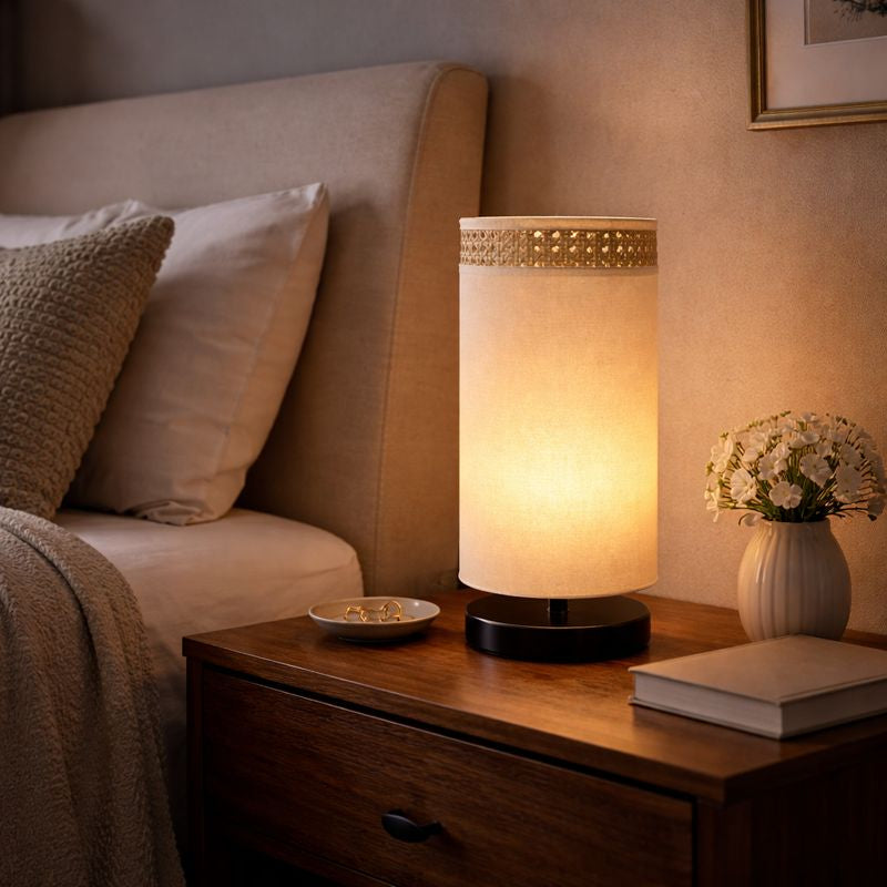Add a warm, calming glow to your space with this handcrafted table lamp by Innore Lighting. Featuring natural Beige linen shade with a natural cane accent, this lamp creates a cozy ambience while adding subtle texture to modern interiors. The black metal base gives it a clean, contemporary finish—perfect for bedside tables, living rooms, or reading corners.