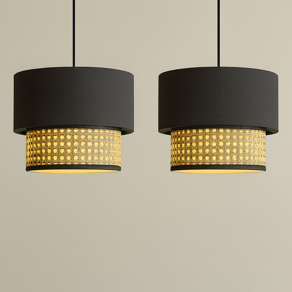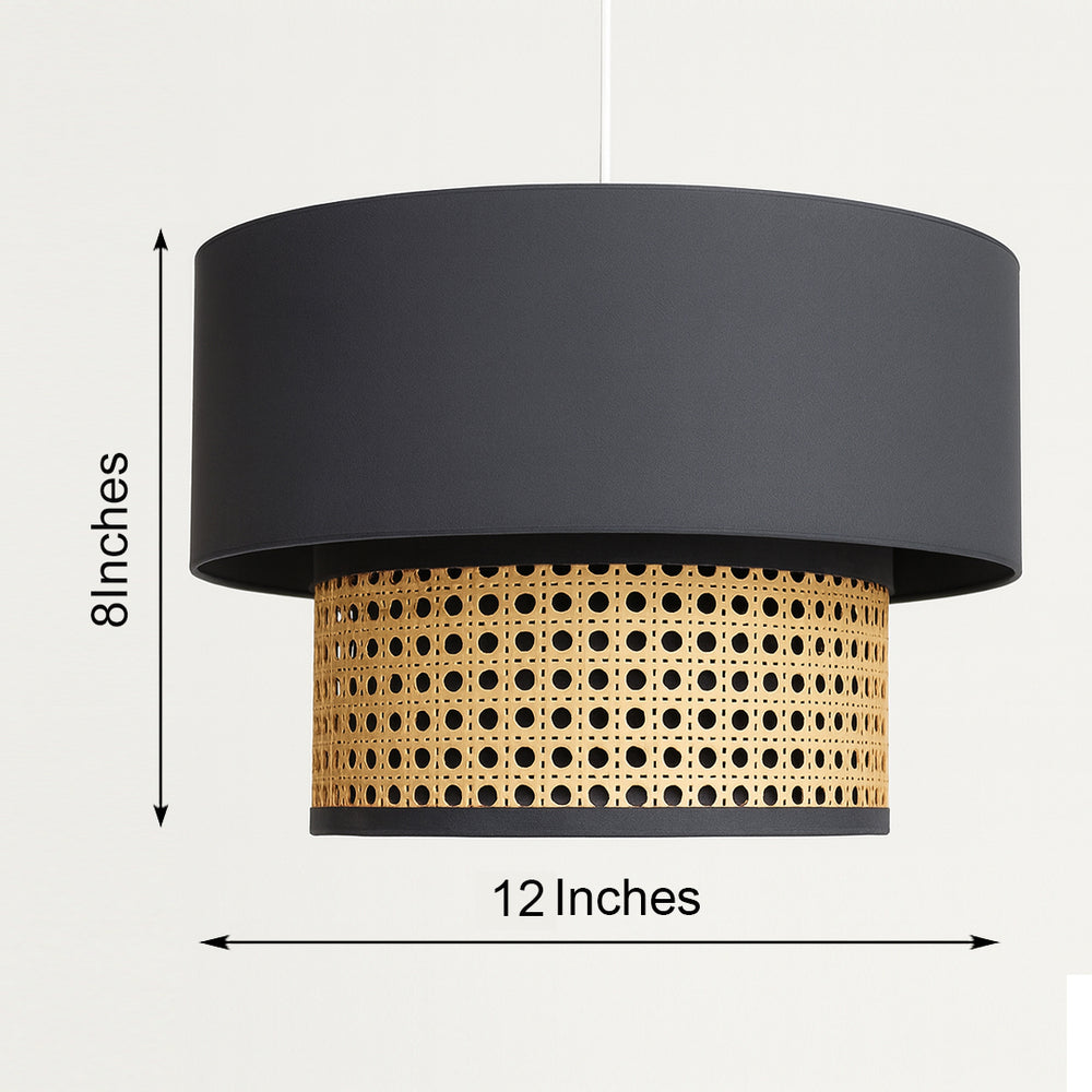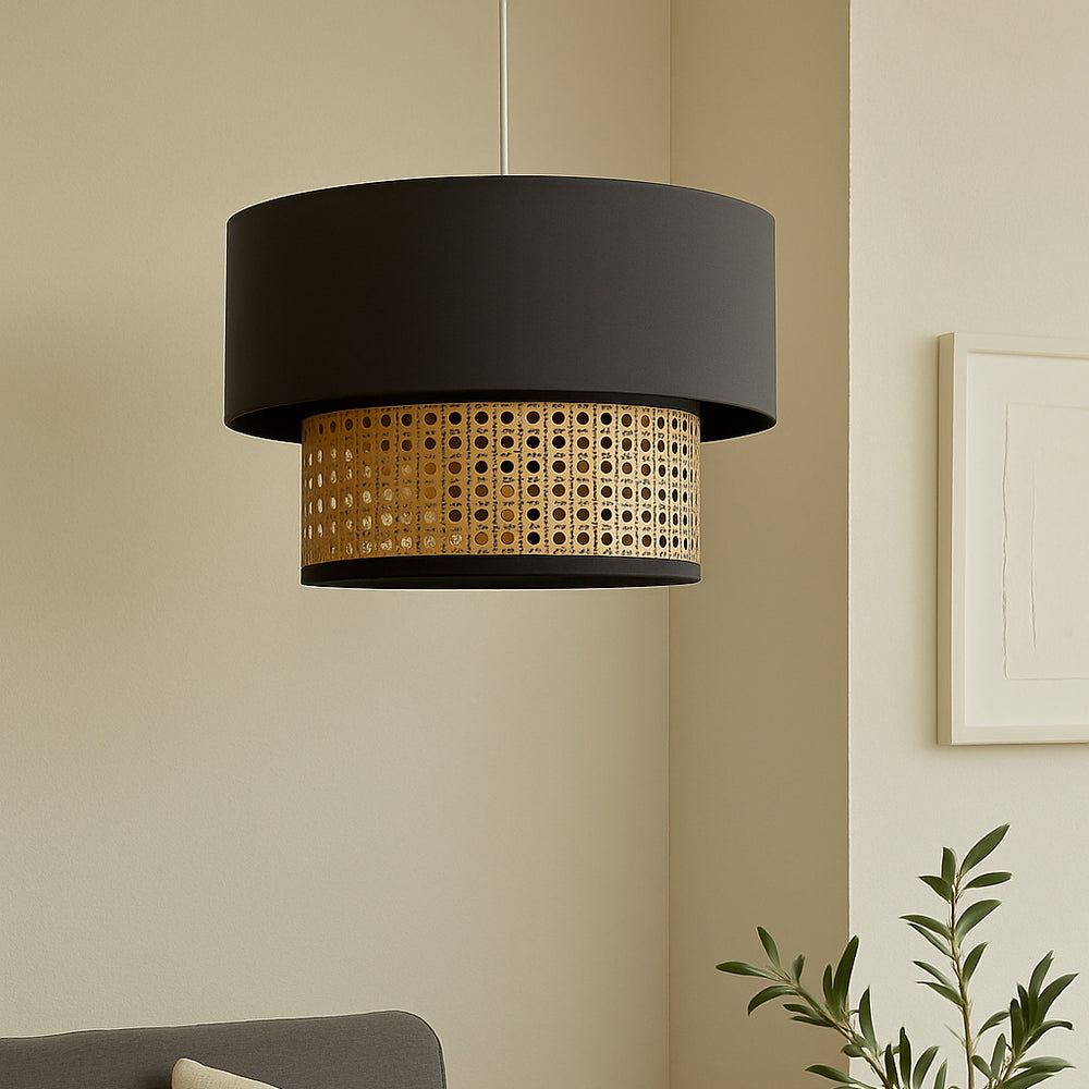 Sophisticated and timeless, this black fabric and rattan pendant lamp blends contemporary design with artisanal craftsmanship. The sleek black outer shade contrasts beautifully with the natural woven rattan inner layer, giving your interiors a warm, stylish character.