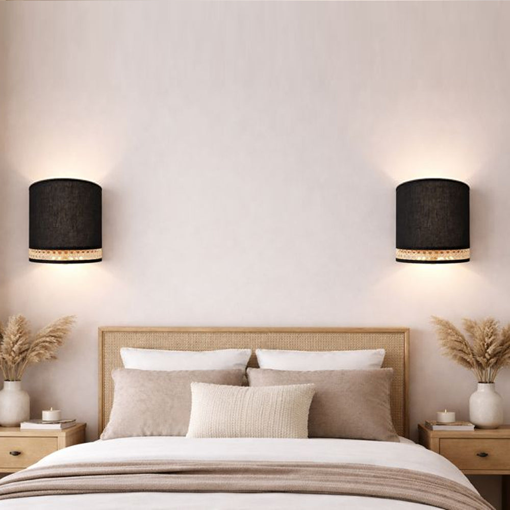 Wall Lamp is made using authentic hand-woven cane and Black Linen , known for its durability and beautiful geometric pattern.
