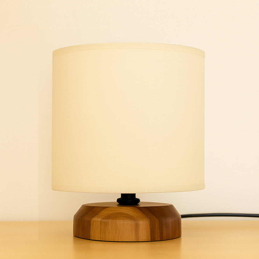 Bring warmth and elegance into your home with this handcrafted wooden table lamp. Designed with a smooth natural wood base and a soft fabric drum shade, it creates a perfect balance between simplicity and sophistication.